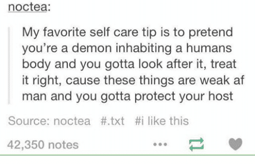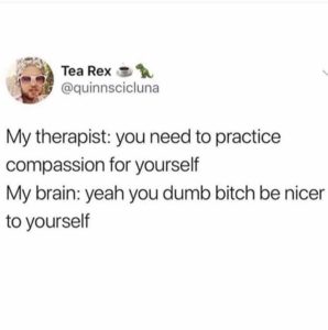 Do you listen to the way you talk to yourself? All the face-masks and bath bombs in the world won’t help you if the dialogue in your head is still one of judgement and criticism. The best way to take good care of yourself is to check your self-talk – is it kind? is it helpful? is it necessary? Sometimes it’s easier to analyse your thoughts as if they were spoken out loud & directed at someone you care deeply about. Bet you wouldn’t stand for some of that. So don’t talk to yourself that way unless you want to continue cultivating a poor self-image.